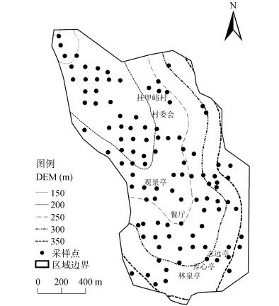 1 材料与方法 1.1 研究区概况挂甲峪地区(117°05′27.90 ~ 117°06′32.50″E,40°15′08.15″ ~ 40°16′15.11″N)位于北京市平谷区北部,属于暖温带半湿润大陆性季风气候,海拔123.18 ~ 371.62 m,年均气温10 ~ 20 ℃,年均降水量644 mm,面积2.411 km2[15]。该区域北、东、南三面环山,中间为一狭小的丘陵盆地。土壤岩性以砂岩、砂质砾岩、砂质及粉砂质页岩、碳酸盐岩、黏土质岩石等沉积岩为主。土壤母质为洪积冲积物、残积物和坡积物,土壤类型为褐土。土地利用方式主要为林地、园地和草地,林地大部分位于中低山区,园地主要分布在浅山区,草地分布以山前区、川谷及地势较平缓的岗台地带为主。区内林果业发达,林木覆盖率达到70%以上。