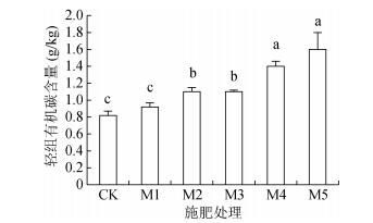 图 5 不同施肥处理对土壤轻组有机碳含量的影响 |