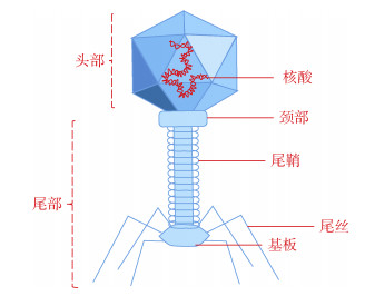 图 1 常见烈性噬菌体结构示意图 Fig. 1 The structural sketch of bacteriophage |