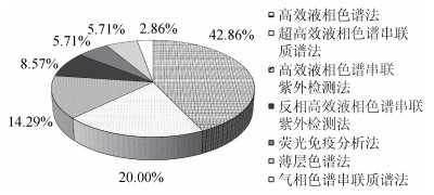 农药残留分析是痕量或微量分析,因此它对方法的准确度和精密度要求较高。气相色谱法(GC)分离度及灵敏度都很高,但不能用于检测气化温度很高或热不稳定性的化合物。气相色谱串联质谱法(GC-MS)既可定性又可定量,但不适用于热不稳定性太强或极性高的农药。噻虫嗪因为挥发性低且极性高的特点,因此不适合采用GC或GC-MS进行测定。液相色谱法(LC)主要用于测定热稳定性较差、沸点较高且分子量较大的有机化合物,而高效液相色谱法(HPLC)则是在经典液相色谱法基础上引入气相色谱理论发展起来的方法,HPLC既可定性又可定量,且具有分离速度快、选择型好、检测灵敏度高和结果可靠等特点,是目前土壤中噻虫嗪残留检测主要用到的方法。HPLC在振荡和微波等条件下,采用强极性的丙酮、乙腈、甲醇等溶剂提取,固相萃取(SPE)、液液萃取、基质固相分散萃取等净化,高效液相色谱测定[26],其最低检出范围为0.004 ~ 0.016 mg/kg,土壤中平均回收率为79.62% ~ 114.20%,变异系数为0.14% ~ 8.60%。图 1中归纳了近年来我国在噻虫嗪土壤残留检测中常用到的方法,噻虫嗪在土壤中残留的检测主要还是依靠高效液相色谱法、超高效液相色谱串联质谱法以及高效液相色谱串联紫外检测法等,这是由噻虫嗪本身的特性所决定的[6, 8, 17, 19, 23, 27-29]。