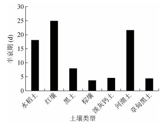 图 2 噻虫嗪在不同土壤类型中的半衰期 Fig. 2 Half-lives of thiamethoxam in different soil types |