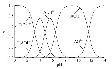 | $ {\rm{AO}}{{\rm{H}}^{{\rm{3-}}}} \leftrightarrow {\rm{A}}{{\rm{O}}^{{\rm{4-}}}}{\rm{ + }}{{\rm{H}}^{\rm{ + }}} $ | (4) |