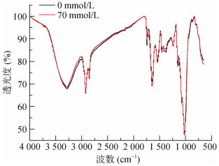 1.4 酵母菌RS1的培养过程从YPD平板上挑取单个RS1菌落,活化至对数期后接种到LPM液体培养基中。前期研究表明,在LPM培养基中70 mmol/L的铝浓度对RS1产生显著抑制作用[13]。故将RS1菌体分别接入铝浓度为0和70 mmol/L的LPM培养中。培养24 h后取样,通过检测OD600确定菌株的生长状况。然后,3 000 g离心5 min收集菌体,除去上清液,用灭菌的去离子水清洗3次后,对菌体进行冷冻干燥处理。冷冻干燥后的菌体样品进行光谱分析。