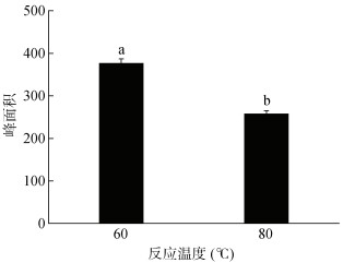 图 4 不同衍生化温度对1, 9-癸二醇衍生化产物响应值的影响(n = 3) Fig. 4 Response of trimethylsiyl derivatives of 1, 9-decanediol with BSTFA under different reaction temperatures |