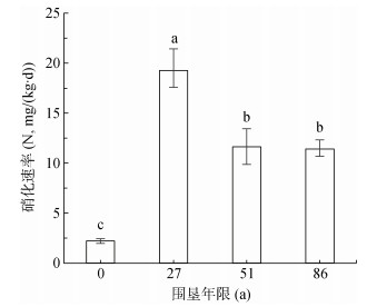 图 1 不同围垦年限土壤的硝化速率 Fig. 1 Nitrification rates of soils with different reclamation years |
