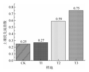 3) 利用均方差决策法得到的优先流指数由大到小为:T3(0.75)、T2(0.59)、T1(0.27)、CK(0.25),随着施肥量的增加,优先流程度也随之增加。
