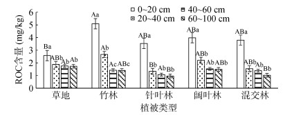 图 5 不同植被类型下土壤ROC分布特征 Fig. 5 Profile distribution of ROC contents under different vegetation types |