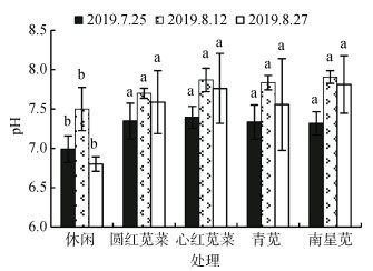 图 2 不同填闲苋菜处理土壤淋溶液pH的动态变化 Fig. 2 pH of soil leachates under different treatments |