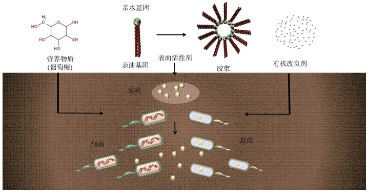 通过上述案例可以发现,疏水性农药的低溶解度限制其生物可利用性使其在土壤中降解缓慢,而表面活性剂分子两端同时含有亲水基和亲油基,其特殊结构有利于增强疏水性化合物的水溶性,降低水土界面张力,促进土壤中吸附态疏水性农药向液相释放[28],从而增强疏水性农药生物可利用性,提高土壤中农药的降解率[29-30]。