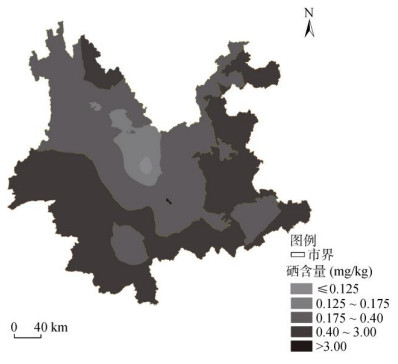 3 结论1) 云南耕地土壤硒元素含量平均值为0.51 mg/kg,分别是全国和世界平均值的1.76倍和1.28倍,其中硒含量大于0.175 mg/kg的采样点位占总采样点的4/5以上,主要分布在滇东、滇南和滇西南,全省耕地土壤总体达到中等足硒水平。