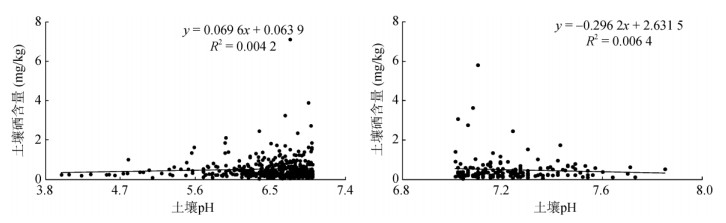 图 4 表层土壤硒与pH的相关性分析 Fig. 4 Correlation between topsoil Se content and pH value |