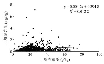 图 5 表层土壤硒与有机质的相关性分析 Fig. 5 Correlation between topsoil Se and organic matter contents |