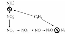 图 1 乙炔抑制法测定反硝化原理[16] Fig. 1 Principle of acetylene inhibition method |