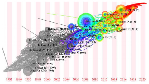 图 5 Web of Science数据库研究文献被引用时区视图 Fig. 5 Time-zone view of cited references in Web of Science |
