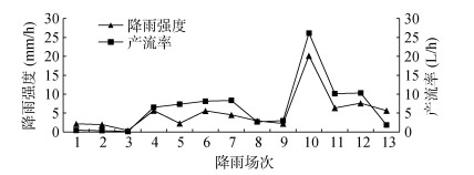 图 3 径流小区降雨强度与产流率变化特征 Fig. 3 Variation characteristics of rainfall intensity and runoff yield in runoff plot |