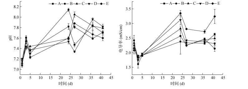 图 2 堆肥过程中pH和EC的变化 Fig. 2 pH and EC changes during composting |