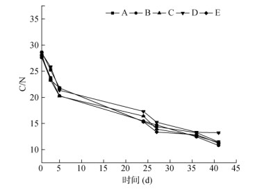 图 3 堆肥过程中C/N比的变化 Fig. 3 C/N ratio change during composting |