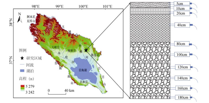 1 材料与方法 1.1 研究区域概况青海湖流域是气候变暖情景下陆面生态系统变化较为剧烈的区域之一[29],介于36°15′ ~ 38°20′N,97°50′ ~ 101°20′E,四面环山,东西长106 km,南北宽63 km,海拔3 242 ~ 5 279 m,流域面积为29 664 km2。青海湖流域内天然草地类型主要有高寒草甸、高寒灌丛、山地草原、沼泽草甸、平原荒漠等草地类型,其中高寒草甸分布最广。流域内为典型的高原大陆性气候,气温日较差大,常年低温、冬长夏短,流域内发育着大面积的多年冻土和季节冻土,多年冻土主要分布于流域的西北部,季节冻土分布于流域的中东部[30]。受全球气候变化影响,近几十年流域内部分多年冻土退化为季节冻土,冻土活动层厚度增大,水热动态变化明显。研究站点位于青海湖北岸海北藏族自治州刚察县千户里子流域(37°25′ N,100°15′ E),属于季节冻土区,海拔3 551 m,多年平均温度-0.6 ℃,极端低温-31 ℃,极端高温25 ℃,年平均降水量389.3 mm,主要集中在6—9月,年蒸发量为1 501 ~ 1 848 mm,植被以小蒿草为主,土壤类型为高山草甸土[31]。土层厚度约为75 cm,0 ~ 10 cm为草毡层(As),10 ~ 22 cm为腐殖质层(O),23 ~ 75 cm为淋溶淀积层(AB),75 cm以下有岩石出现(图 1)。
