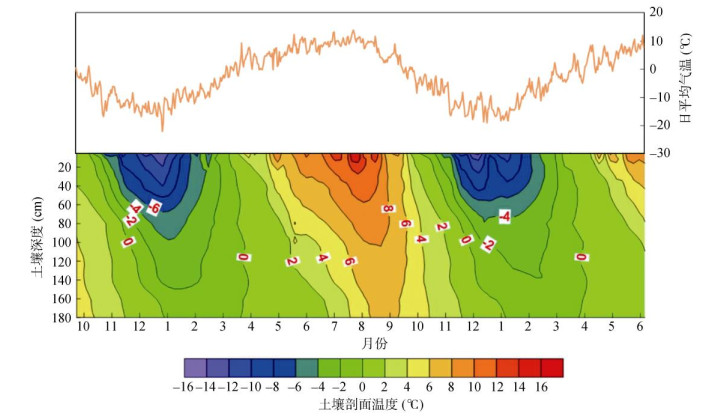 图 2 日平均温度和土壤温度剖面(2018年10月至2020年6月) Fig. 2 Daily mean temperature and soil temperature profile |