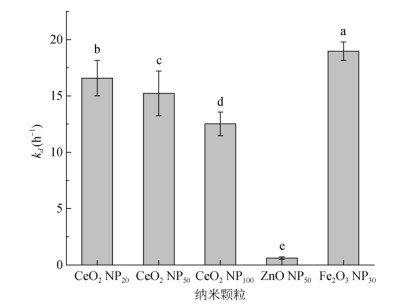 (图中小写字母不同表示不同纳米颗粒间差异显著(P < 0.05,n= 3)) 图 3 不同纳米颗粒的沉积速率 Fig. 3 Deposition rates of different nanoparticles |