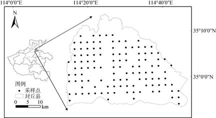 1 材料与方法 1.1 研究区概况封丘县位于河南省东北部(34°53′ ~ 35°14′ N,114°14′ ~ 114°46′ E),是黄淮海平原的一部分,属暖温带大陆性季风气候,年降水量615.1 mm,无霜期214 d,年平均气温13.5 ~ 14.5 ℃,海拔高度65 ~ 72.5 m。全县总面积1 220.5 km2,其中耕地面积6.17×104 hm2,是我国重要的粮食生产基地。