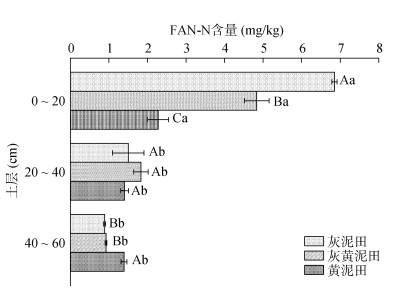 图 2 不同类型水稻土不同土层FAA-N含量 Fig. 2 Contents of FAA-N in different soil layers of different paddy soils |