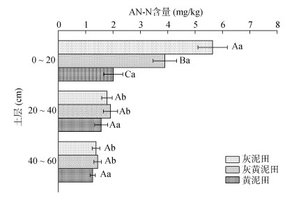 图 5 不同类型水稻土不同土层AN-N含量 Fig. 5 Contents of AN-N in different soil layers of different paddy soils |