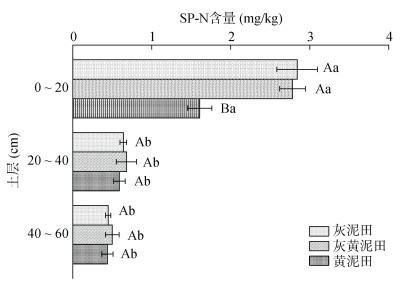 图 6 不同类型水稻土不同土层SP-N含量 Fig. 6 Contents of SP-N in different soil layers of different paddy soils |