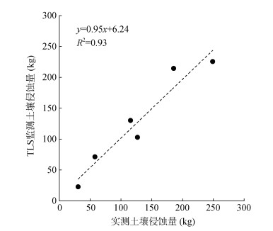 图 5 实测与TLS监测土壤侵蚀量相关性 Fig. 5 Correlation between measured and TLS-monitored soil erosion amounts |