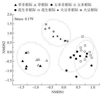 图 3 不同土地利用方式下土壤AMF群落结构的NMDS分析 Fig. 3 NMDS analysis of AMF community compositions under different land-use patterns |