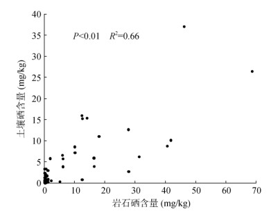 图 5 岩石和土壤中硒含量关系 Fig. 5 Relationship between Se contents in rock and soil |