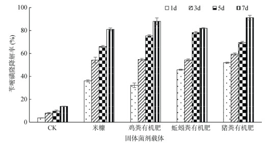 图 6 S113固体菌剂对苄嘧磺隆的降解 Fig. 6 Degradation of bensulfuron methyl by strain S113 solid microbial agents |