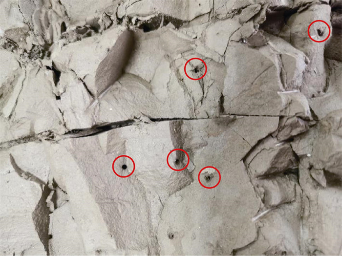 图 1 成品标本正面孔眼外露示意图 Fig. 1 Exposed drill holes on front of finished soil specimen |