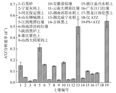 图 4 不同类型土壤/过硫酸盐体系中ATZ分解的速率 Fig. 4 ATZ decomposition rates in different soil/persulfate systems |