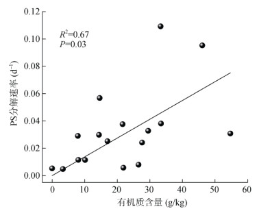 图 5 过硫酸盐分解速率与土壤有机质含量之间的相关性 Fig. 5 Correlation between soil organic matter content and persulfate decomposition rate |