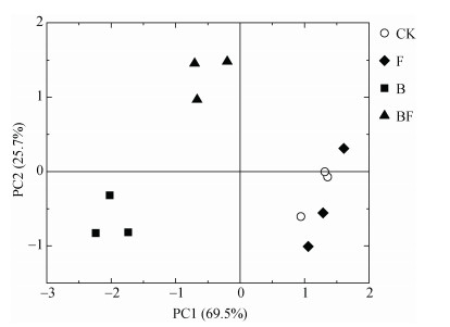 图 1 不同施肥处理下土壤细菌群落分布PCoA分析图 Fig. 1 PCoA analysis of soil bacterial communities under different fertilization treatments |