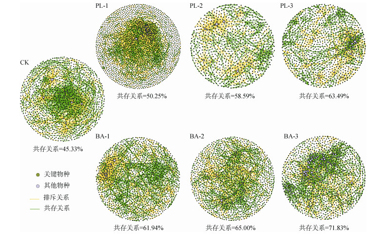 表 6 土壤关键菌群共现网络的特征值 Table 6 Eigenvalues of co-occurrence networks of soil keystone taxa |
