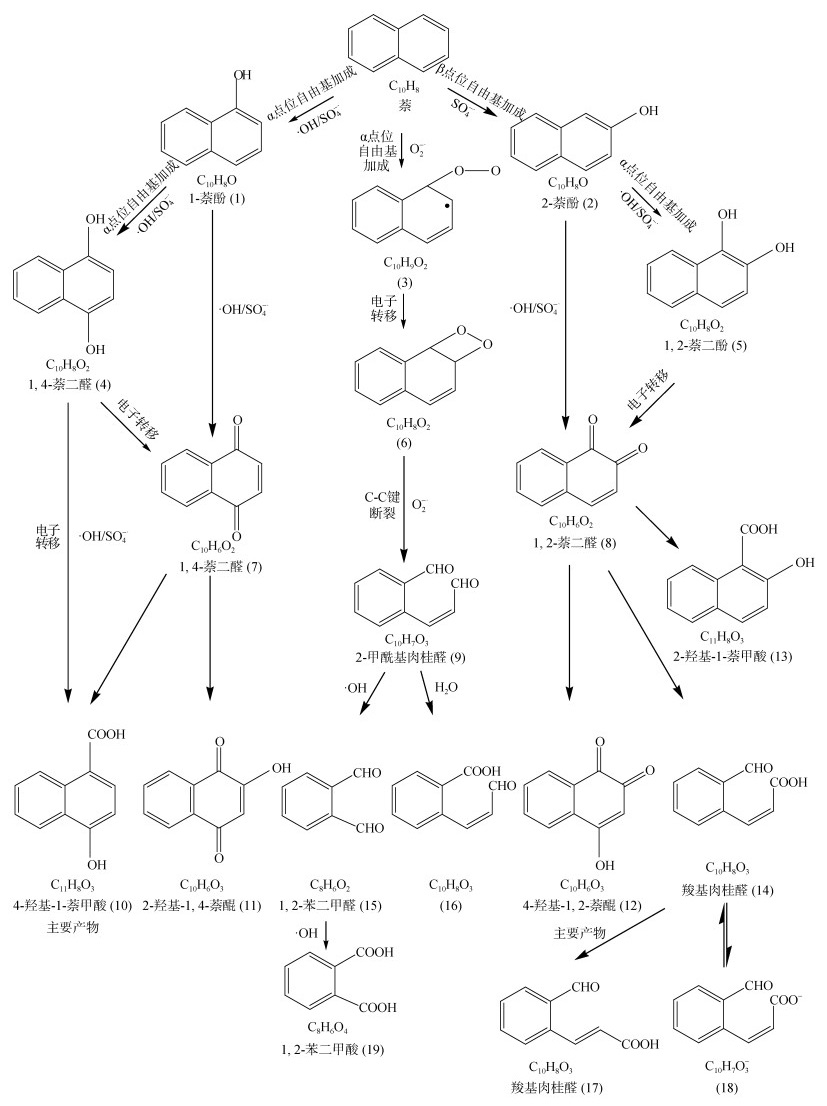 4) 拓宽氧化剂的使用范围,提高氧化剂的利用率。提高氧化反应的电子传输效率、扩大pH适用范围、优化催化剂与氧化剂的投加量、提高活化剂对萘的专一性作用等有待进一步研究。