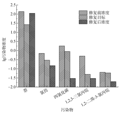 图 4 各污染物修复前后浓度 Fig. 4 Concentration of each pollutant before and after repair |