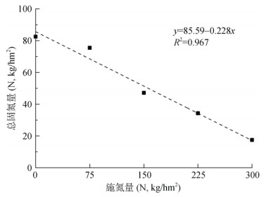 图 3 红萍总固氮量与施氮量的拟合曲线 Fig. 3 Fitting curve between total nitrogen fixation and nitrogen application of azolla |