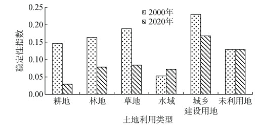 图 4 不同土地利用空间结构稳定性指数 Fig. 4 Stability indexes of spatial structure under different land uses |