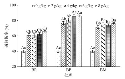 图 4 不同来源生物质炭和添加量下土壤磷的解吸率 Fig. 4 Phosphorus desorption rates of brown soil under different types and amounts of biochars |