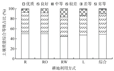 图 4 不同耕地利用方式土壤质量等级占比 Fig. 4 Proportions of soil comprehensive quality grades of farmlands under different use patterns |