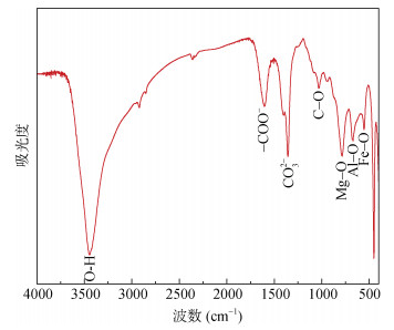 图 3 MgAl-LDHs-C的傅里叶变换红外光谱图 Fig. 3 FT-IR spectrum of MgAl-LDHs-C |