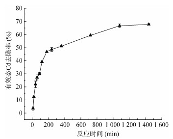图 5 浙江台州渗育型水稻土中有效态Cd去除率随MgAl-LDHs-C反应时间的变化 Fig. 5 Change of available Cd removal rate of percogenic paddy soil from Taizhou City of Zhejiang Province with MgAl-LDHs-C reaction time |