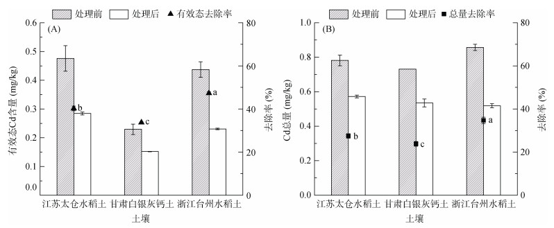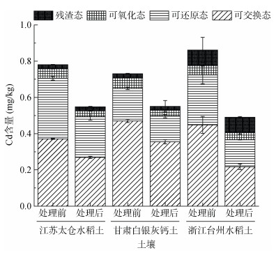 1 材料与方法 1.1 供试土壤供试Cd污染土壤分别采自江苏太仓、甘肃白银和浙江台州具有代表性的农田耕层(0 ~ 20 cm)。土壤样品于室内自然风干,经去除草屑、石砾等杂质后,研磨过2 mm尼龙筛网备用。3种土壤的基本理化性质见表 1。