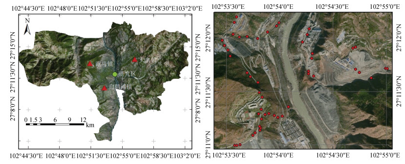 图 1 研究区地理位置(左)及采样点分布(右) Fig. 1 Location of study area (left) and sampling sites (right) |