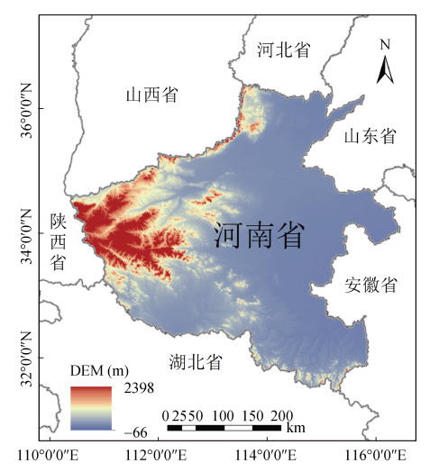 1 材料与方法 1.1 研究区概况河南省位于我国中部,东部与安徽省、山东省接壤,北接河北省、山西省,西连陕西省,南临湖北省,总面积16.7万km2。河南省地势东低西高,东部为平原,西部为山地和丘陵,是我国重要的粮食大省。全省大部分地区为暖温带,南部地区跨亚热带,属于北亚热带向暖温带过渡的大陆性季风气候区。