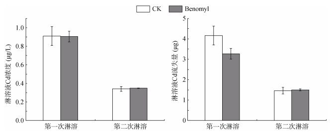 图 4 土壤淋溶液Cd浓度与流失量 Fig. 4 Cd concentration and loss in soil leaching solution |