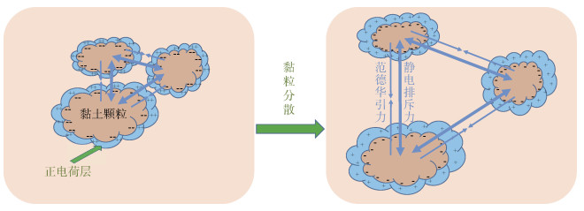 图 1 黏粒分散示意图 Fig. 1 Schematic diagram of clay dispersion |